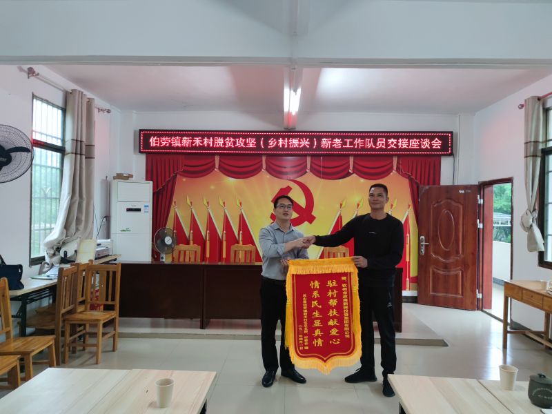一、2021年4月25日,集團公司與市民政局、市退役軍人局、大成鎮(zhèn)黨委領(lǐng)導和新派駐工作隊員一同抵達浦北縣大成鎮(zhèn)聯(lián)成村,召開了浦北縣大成鎮(zhèn)聯(lián)成村鄉(xiāng)村振興座談會,座談會上對老一屆工作隊周榮正等同志的辛勤付出和成績給予了高度肯定,對新一屆工作隊梁家強等同志的到來表示歡迎。座談會結(jié)束后,進行了新舊工作隊交接儀式。