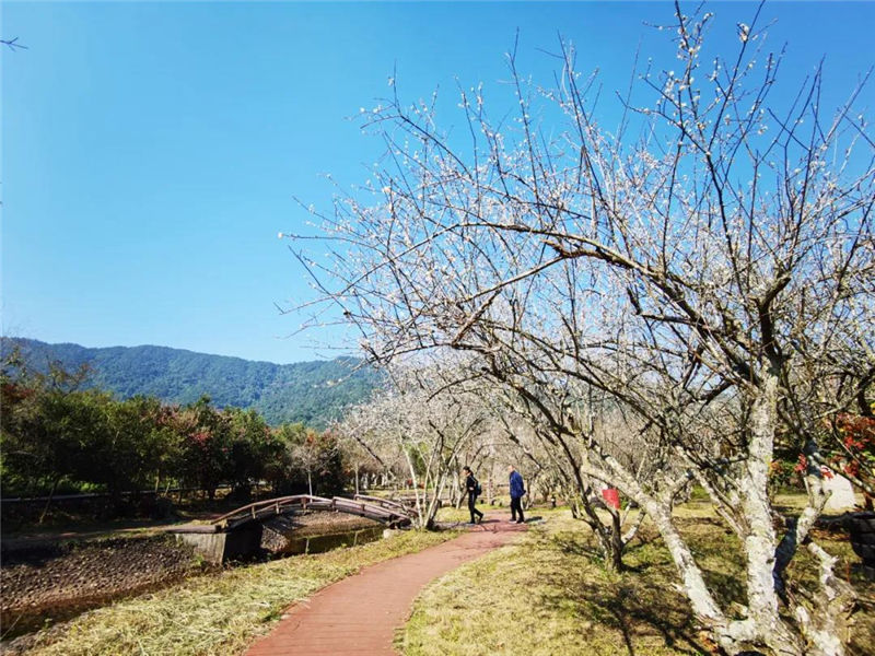 八寨溝梅園四周青山環(huán)繞,鳥語花香,當(dāng)梅花盛開時,漫山遍野的梅花與青山綠水交相輝映,宛如世外桃源;當(dāng)你置身其中,極目望去,朵朵梅花在艷陽冷風(fēng)中傲然綻放;遠(yuǎn)望,一樹繁花似錦如雪,近賞,朵朵白梅挺立枝頭,小巧的花瓣,精致的花蕊,潔白無瑕,成群的蜜蜂在花間縈繞。