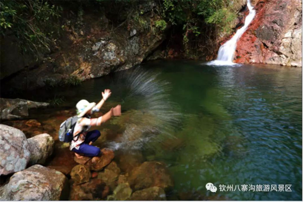 欽州的八寨溝與四川的九寨溝一樣,都具有豐饒的水源,異常清澈,天然原生態(tài),均為未遭到現(xiàn)代文明入侵和污染的圣潔凈土。也許是八寨溝的水都發(fā)自十萬(wàn)大山的深處吧,匯聚著眾多的山泉沿著溝壑奔騰而下,一路隨心翻浪,一路高亢歡歌,從而在長(zhǎng)年的沖擊中形成了大大小小的泉潭,并且順著山勢(shì)形成了不少或大或小的瀑布。