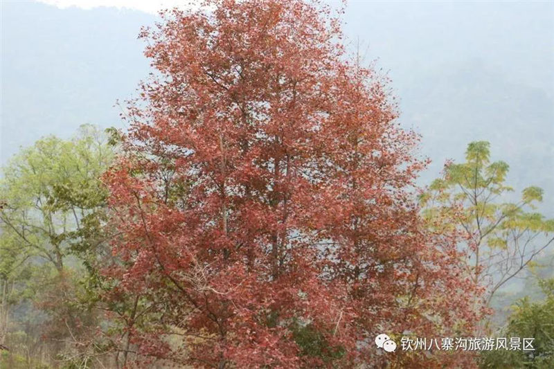 除了梅花,八寨溝梅園里的楓樹葉也開得正旺,非常漂亮,楓葉嬌紅似火,遠(yuǎn)眺火紅的楓葉像一團(tuán)團(tuán)火在燃燒,那些從樹上飄落下來的葉子,像一只只紅色的蝴蝶在空中自由的飛舞。