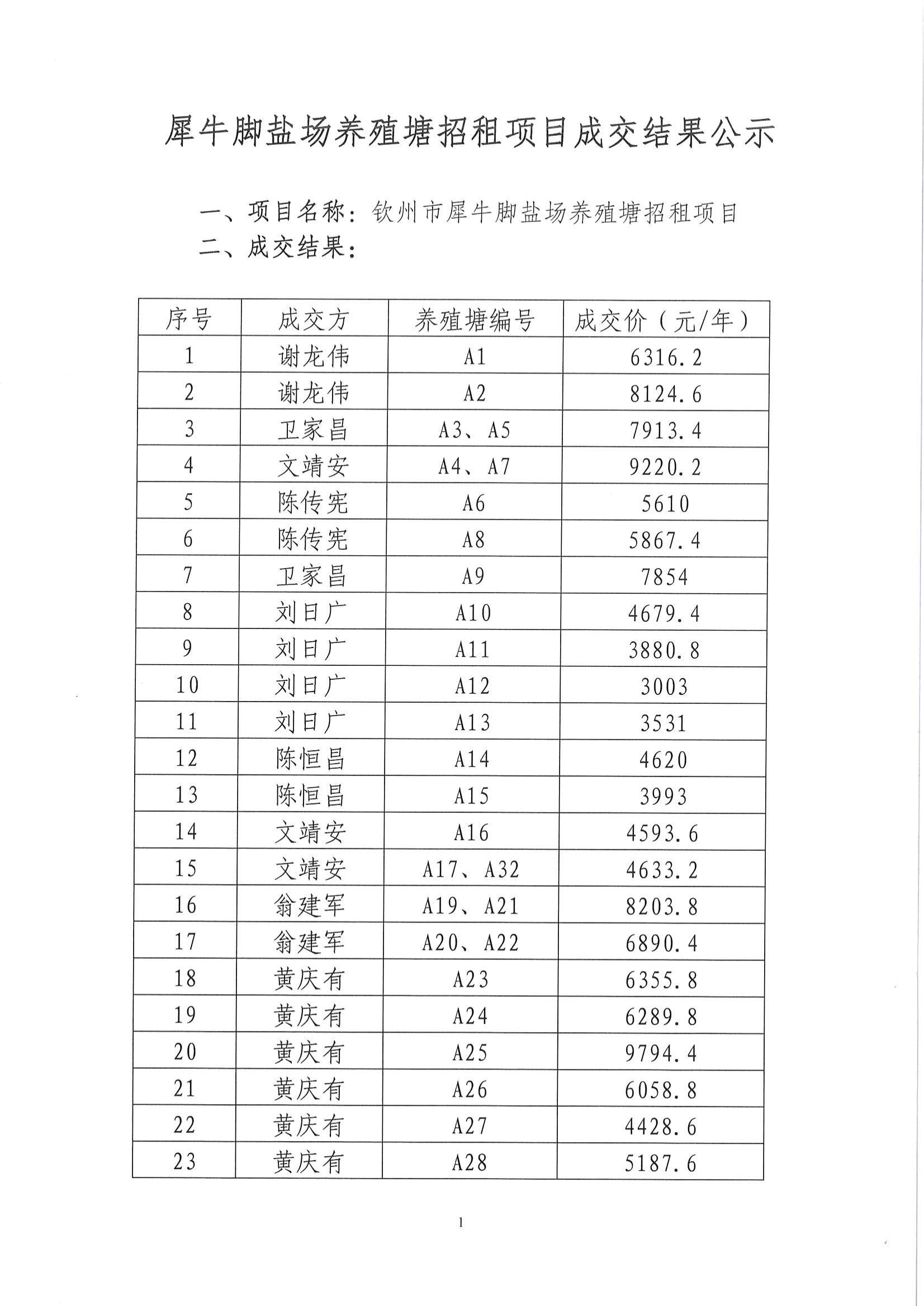 犀牛腳鹽場(chǎng)養(yǎng)殖塘招租項(xiàng)目成交結(jié)果公示