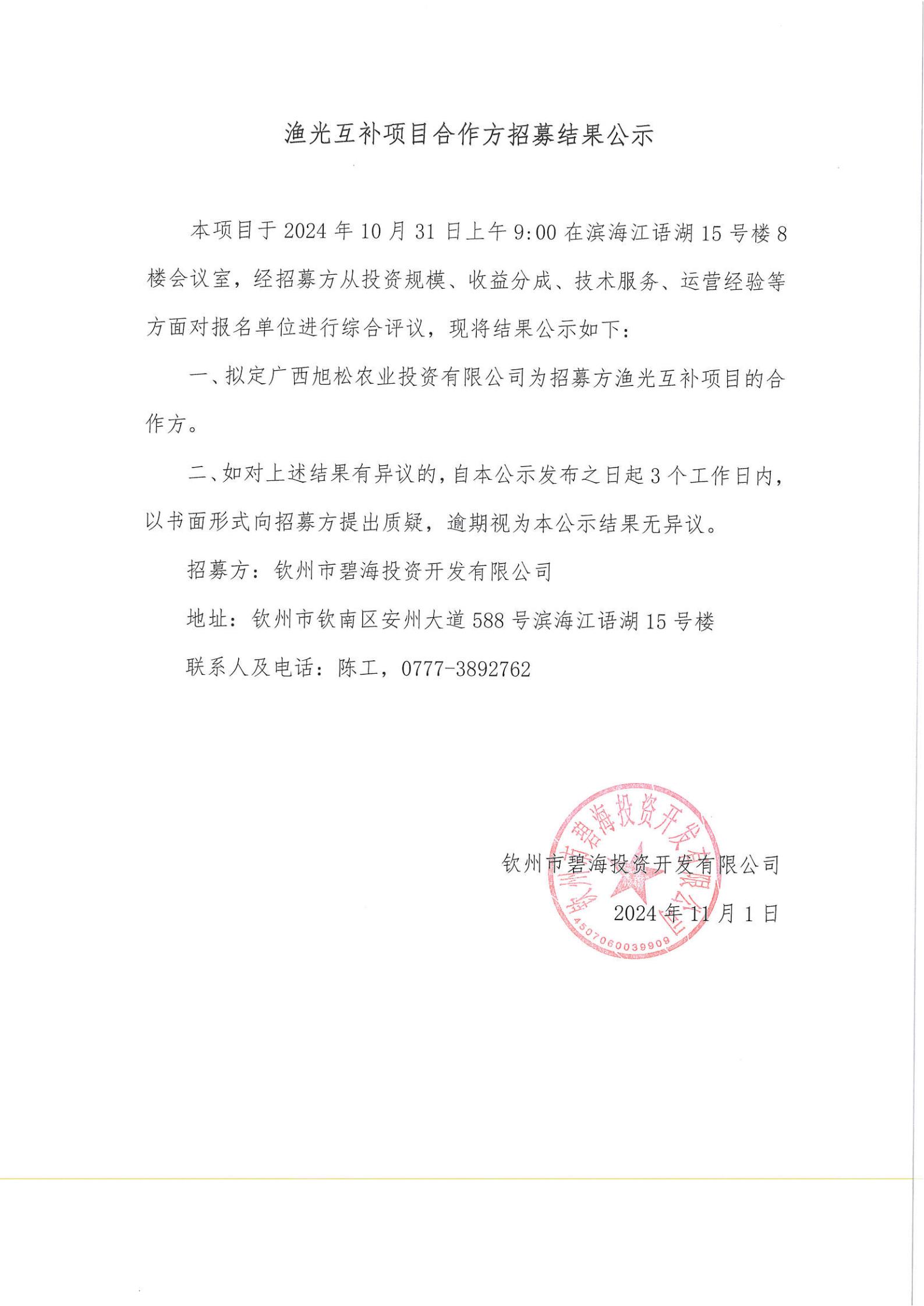漁光互補項目合作方招募結(jié)果公示