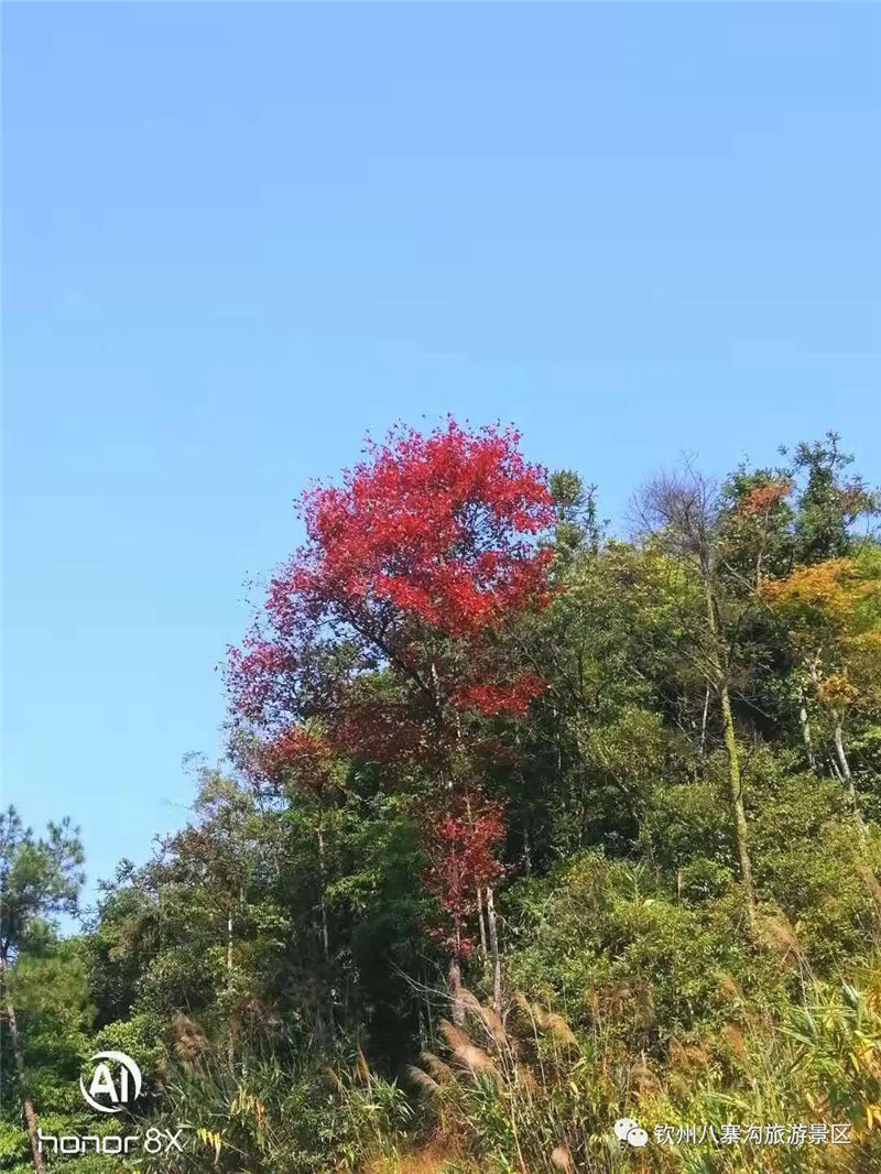 很多人都說,八寨溝好像是沒有冬天的。在北方雪花紛飛之時,八寨溝仍然綠意盎然,仍然溫暖如春。但似乎是預知了冷空氣的到來,八寨溝的楓樹也悄然披上紅裝,梅園盡頭,萬壽谷公路兩側(cè),俯首間,一樹紅葉,滿徑絳色;仰望中,層林盡染,天然畫卷。梅園盡頭,五孔橋旁,流水潺潺,一潭清水,楓葉輕浮,好一幅天然的臨水丹楓圖。