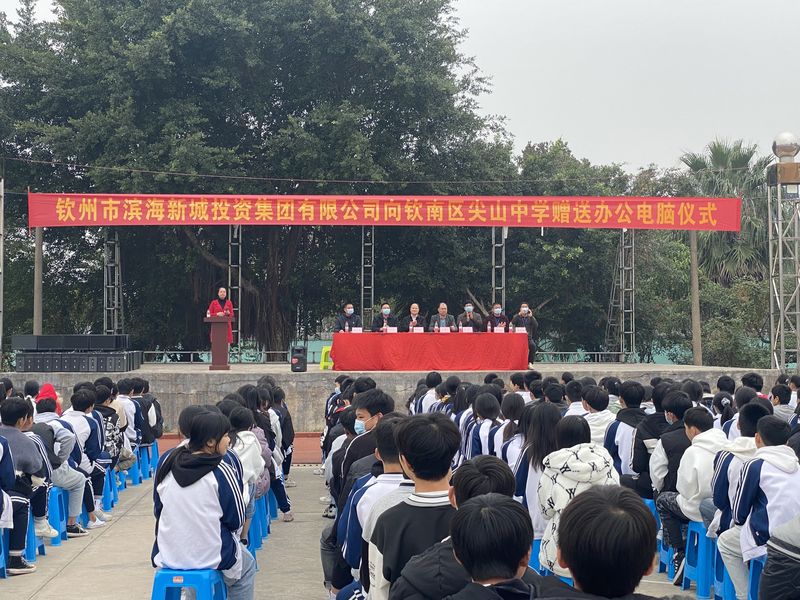 2022年1月13日,集團(tuán)公司副總經(jīng)理、工會主席楊新棟帶領(lǐng)欽州濱海資產(chǎn)管理有限公司領(lǐng)導(dǎo)到欽南區(qū)尖山中學(xué)捐贈一批辦公設(shè)備,本次捐贈臺式電腦81臺、音頻設(shè)備6套等。