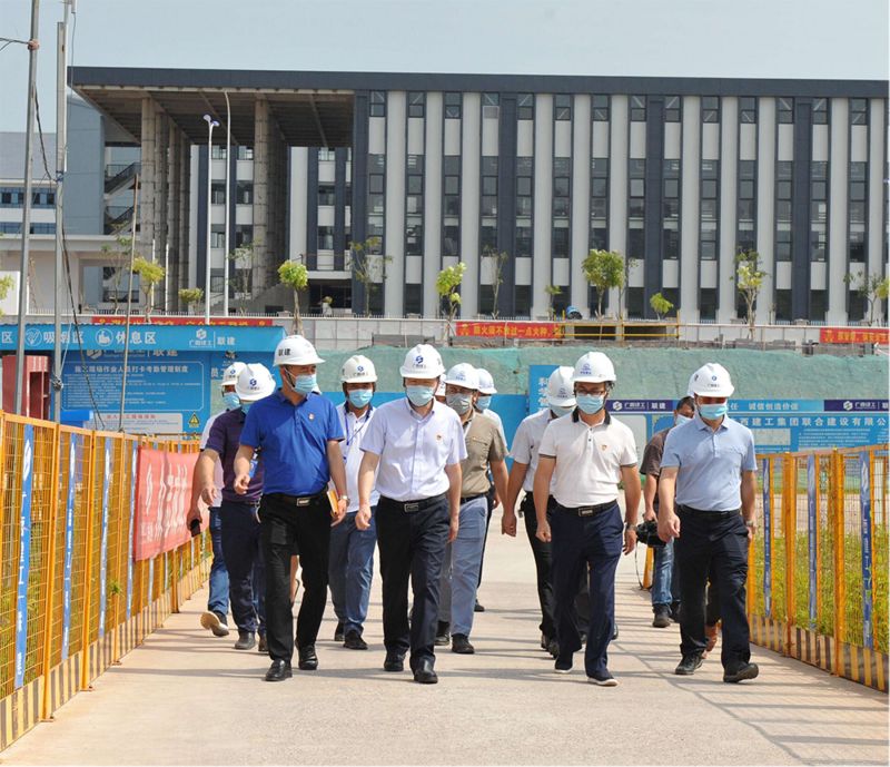 6月4日下午,市委副書(shū)記高樸,市委常委、組織部部長(zhǎng)莫錦榮到市委黨校遷建工程項(xiàng)目現(xiàn)場(chǎng)調(diào)研,詳細(xì)了解市委黨校遷建工程項(xiàng)目規(guī)劃情況、建設(shè)進(jìn)度,協(xié)調(diào)解決項(xiàng)目在建設(shè)、用地規(guī)劃、建設(shè)資金、人才引進(jìn)等方面存在的問(wèn)題。我集團(tuán)公司董事長(zhǎng)趙文博、副總經(jīng)理余業(yè)勝陪同現(xiàn)場(chǎng)調(diào)研。