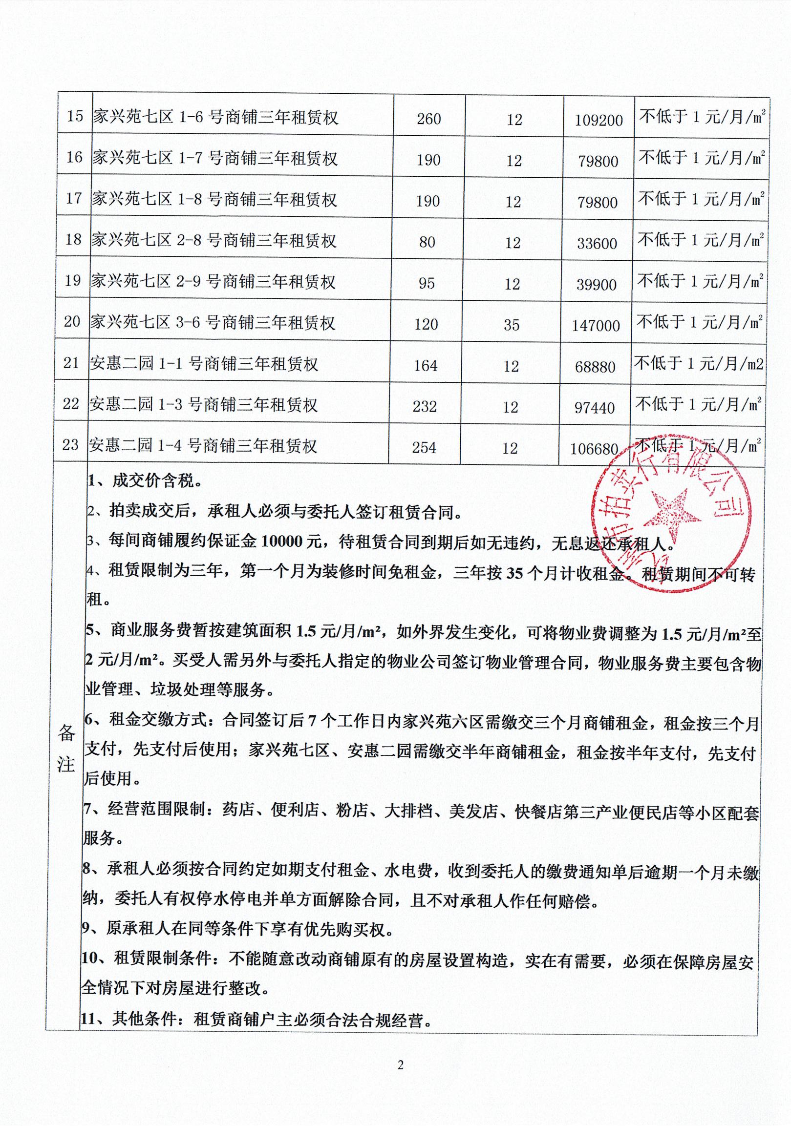 (家興苑六區(qū)、七區(qū)、安惠二園)商鋪租賃權拍賣公告