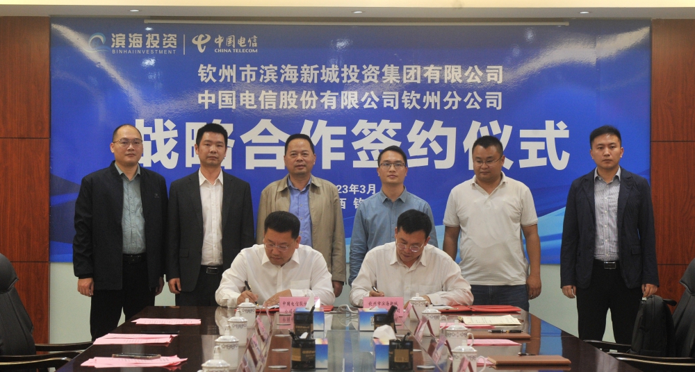 為深入貫徹習(xí)近平新時(shí)代中國特色社會(huì)主義思想和黨的二十大精神、落實(shí)欽州市委市政府各項(xiàng)決策部署、加快推進(jìn)“數(shù)字欽州”建設(shè),以實(shí)際行動(dòng)踐行欽州市“四輪驅(qū)動(dòng)”戰(zhàn)略,3月16日下午,我集團(tuán)公司與中國電信欽州分公司簽署《戰(zhàn)略合作協(xié)議》,將在5G、物聯(lián)網(wǎng)、云計(jì)算、大數(shù)據(jù)、網(wǎng)絡(luò)服務(wù)支撐等新技術(shù)應(yīng)用開展深度合作,就今后共同推進(jìn)城市大數(shù)據(jù)運(yùn)營項(xiàng)目建設(shè)工作達(dá)成共識(shí)。市濱海投資集團(tuán)公司黨委書記、董事長盧長任,中國電信欽州分公司黨委書記、總經(jīng)理羅東分別致辭并簽約。