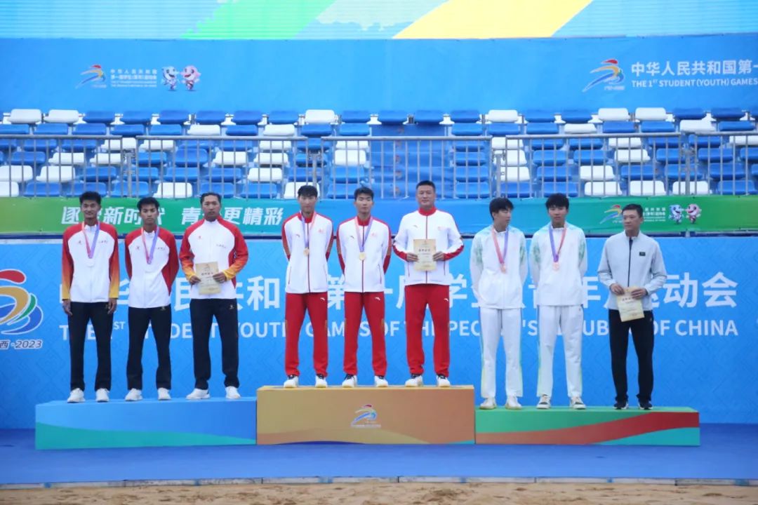 10月29日,第一屆全國學(xué)生(青年)運(yùn)動(dòng)會(huì)沙灘排球(公開組)決賽在欽州茅尾海沙灘排球訓(xùn)練基地舉行,南京市一隊(duì)的周勇吉/徐棕琪憑借出色發(fā)揮,以2:0戰(zhàn)勝黃浦區(qū)一隊(duì)的白鵬碩/呂志輝,奪得冠軍。
