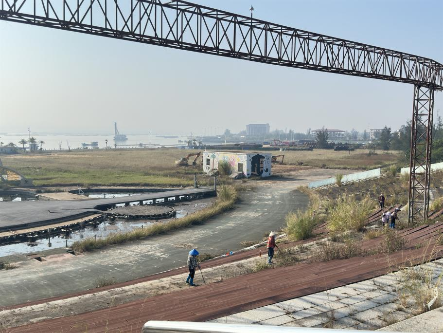 此次場地清理工作涉及范圍廣泛,涵蓋了活動核心區(qū)域及周邊地帶。從布滿雜草的沙灘場地到零散分布的各類垃圾,清理團(tuán)隊分工明確、配合默契,有條不紊地推進(jìn)著每一項清理任務(wù)。目前共累計清理各類垃圾雜物百余噸,其中包括廢棄的蠔殼、塑料垃圾、漂浮物、雜草等。人工配合機械打草約43000㎡,機械平整場地約3100㎡,更換塑木生態(tài)板113㎡,墻面噴漆約1000㎡,清洗水池約2900㎡,維修廁所一座,安裝化糞池兩個,拉電纜約1200米,做到了主會場全部通水通電,使海灘恢復(fù)了自然整潔的風(fēng)貌,完善了蠔情廣場的交通指示標(biāo)志,為蠔情節(jié)期間的海灘活動提供了安全舒適的場地。