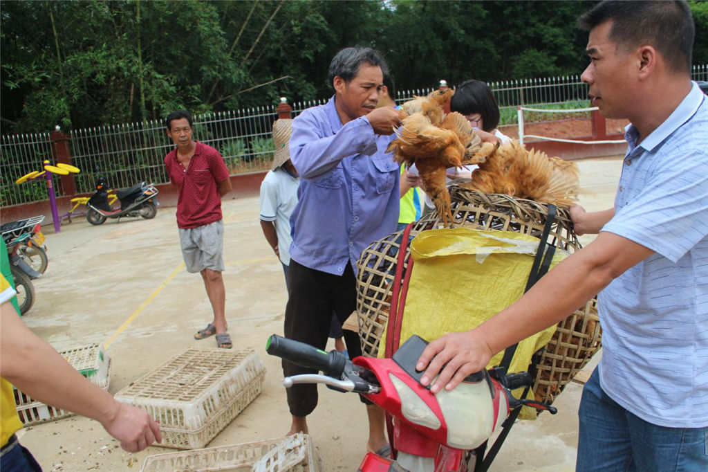 當(dāng)天上午,運(yùn)送雞苗的貨車從欽州市出發(fā),經(jīng)過1個小時的行程來到了靈山縣伯勞鎮(zhèn)新禾村公共服務(wù)中心,此時,貧困戶們已經(jīng)滿心歡喜地到來,攜帶裝雞苗的籠子耐心等候著?,F(xiàn)場,集團(tuán)公司副總經(jīng)理?xiàng)钚聴澰诠ぷ魅藛T的協(xié)助下,依次給貧困戶們發(fā)放了雞苗,楊新棟笑著對貧困戶說到:“大家領(lǐng)取到的雞苗平均每只重600克左右,雞苗在運(yùn)出養(yǎng)殖場之前都已閹割過了,具有生長發(fā)育快、抗病能力強(qiáng)、成活率高、市場效益好等特點(diǎn),大家回去后要管護(hù)好雞苗,讓扶貧雞真正為大家?guī)砻撠毾M?rdquo;,看著一只只活潑亂跳、帶著脫貧希望的雞苗裝進(jìn)了自家的籠子里,貧困戶們笑得合不攏嘴,心里樂開了花。