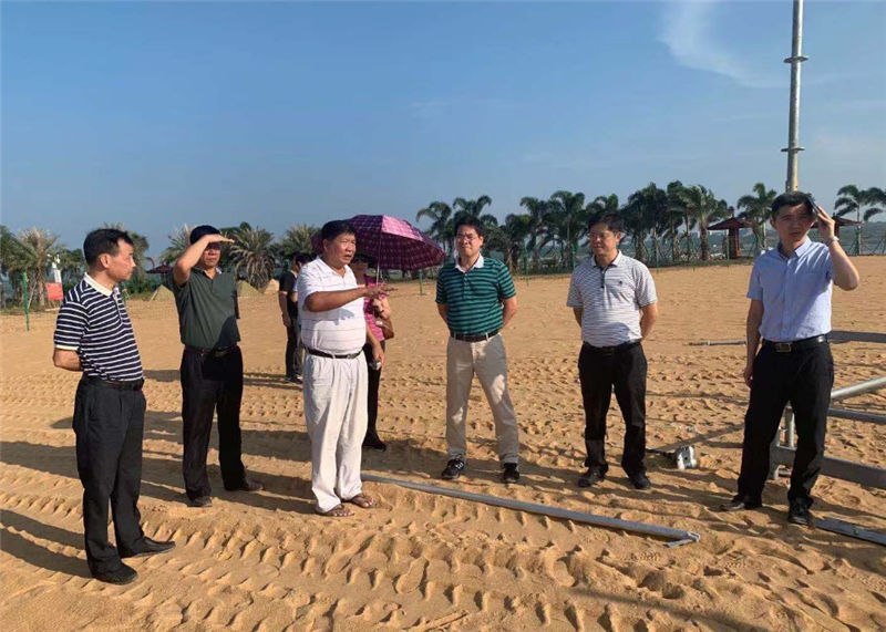 2019年10月9日下午4點,潘定喜副秘書長到我集團公司檢查沙灘排球賽項目現(xiàn)場籌備工作。我集團公司副總經(jīng)理余業(yè)勝及相關(guān)現(xiàn)場人員到現(xiàn)場迎接檢查。我集團公司副總經(jīng)理余業(yè)勝對我集團公司開展關(guān)于沙排賽場地建設的情況做相關(guān)的工作匯報。潘定喜副秘書長聽取匯報后,他首先對我集團公司近期在建設沙排賽場地方面所作出的工作表示肯定,其次他要求各個相關(guān)部門要通力配合,做好沙排賽場地建設、宣傳、安全保衛(wèi)、醫(yī)療衛(wèi)生、交通保障的工作。
