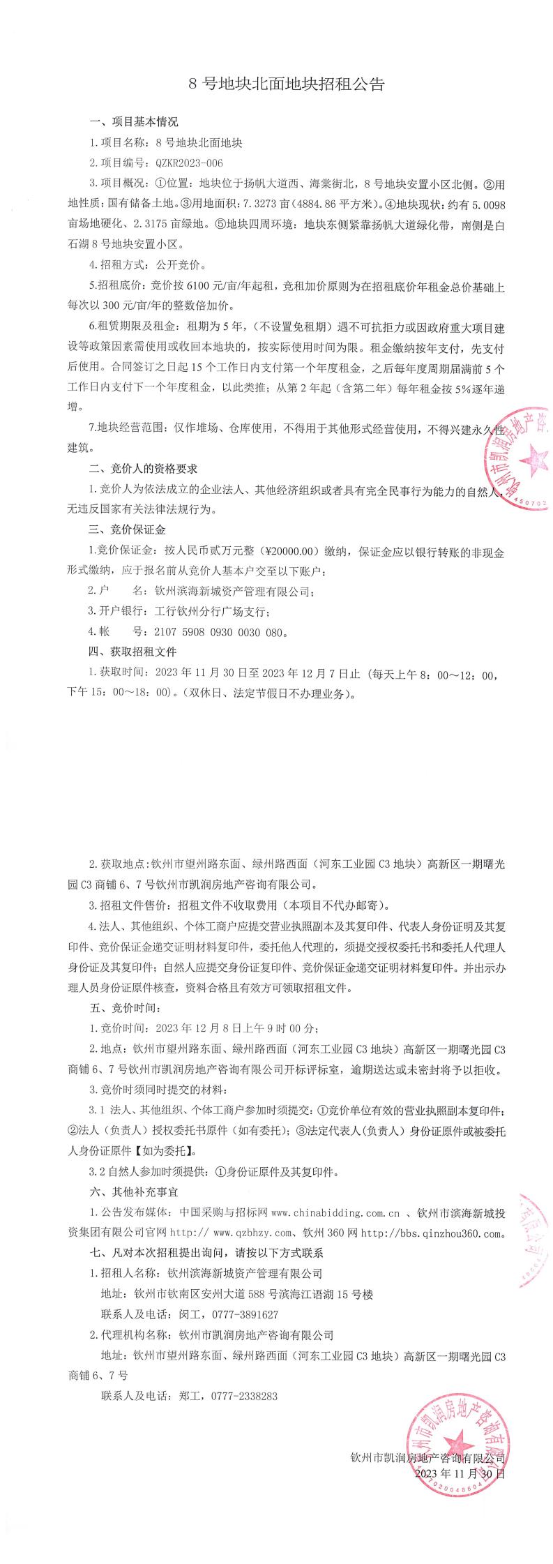 8號地塊北面地塊(QZKR2023-006)成交結(jié)果公告