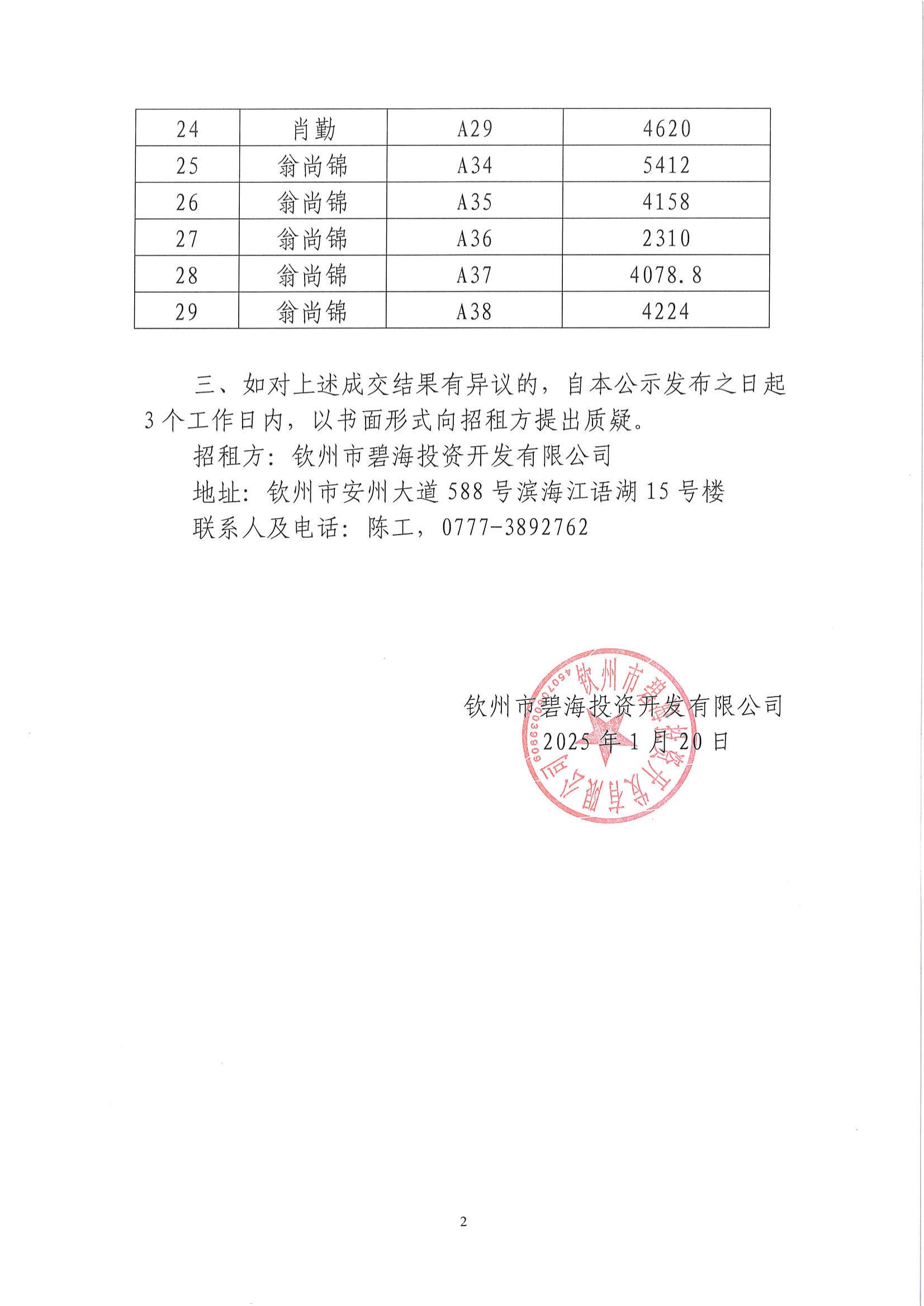成交公告(欽州市七里香溪北面3畝土地)