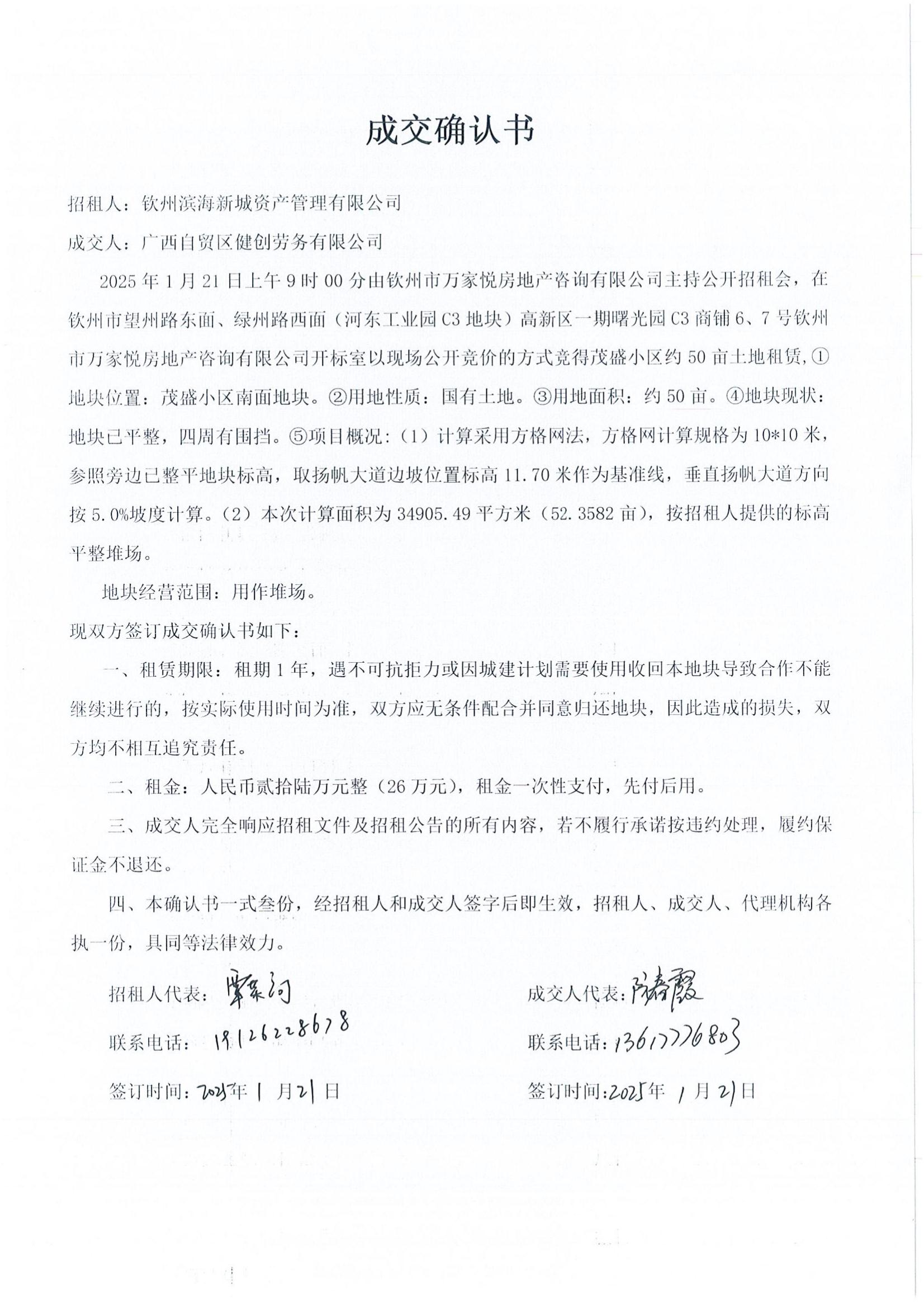 茂盛小區(qū)約50畝土地租賃(QZWJY2025-001)成交結(jié)果公告