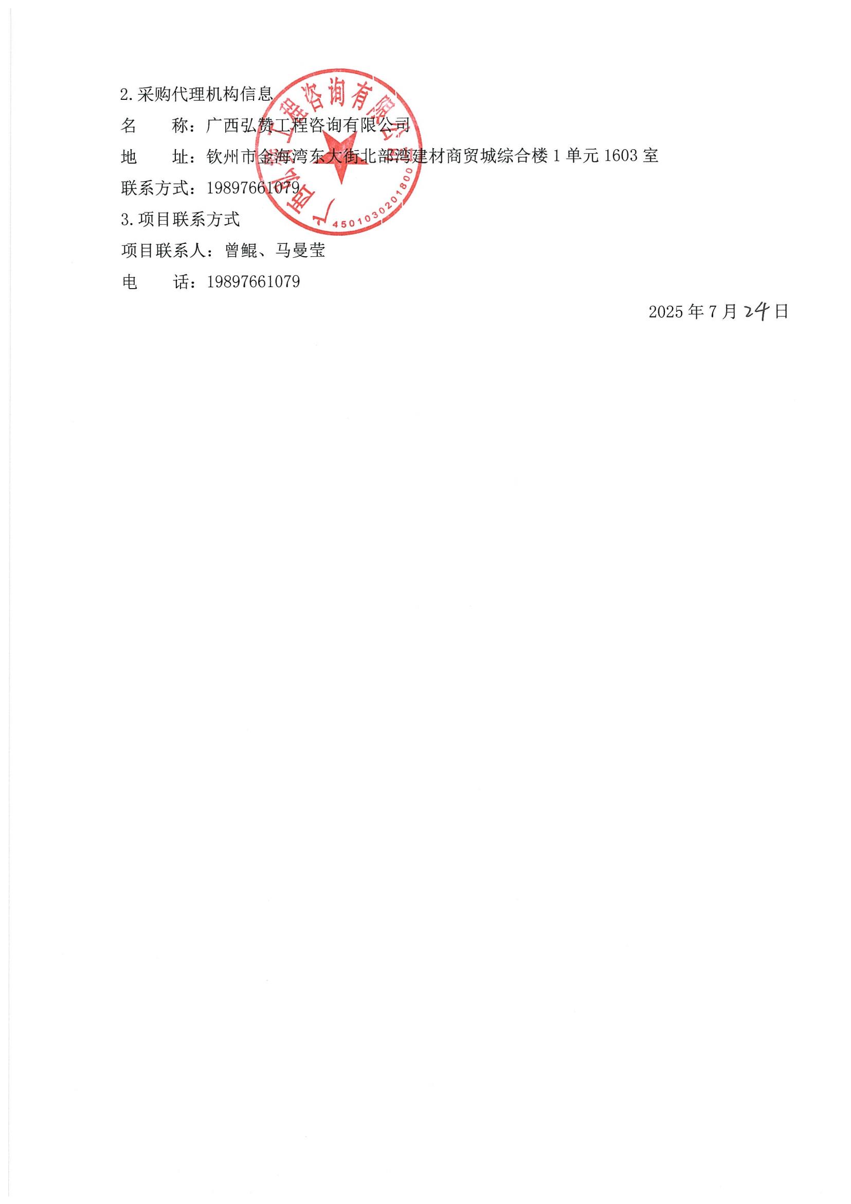 廣西弘贊工程咨詢(xún)有限公司關(guān)于欽州市市政工程和照明管理處(平山大街)新建路燈箱變10KV配電工程的成交公告