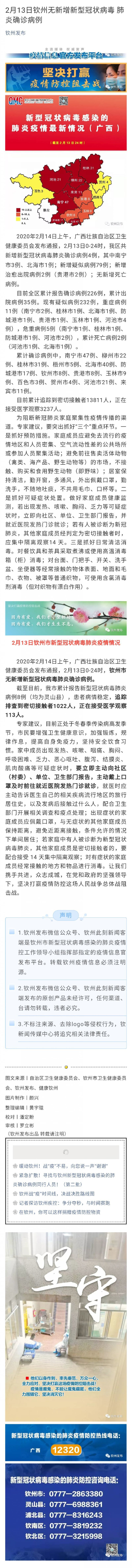 2月13日欽州無新增新型冠狀病毒 肺炎確診病例