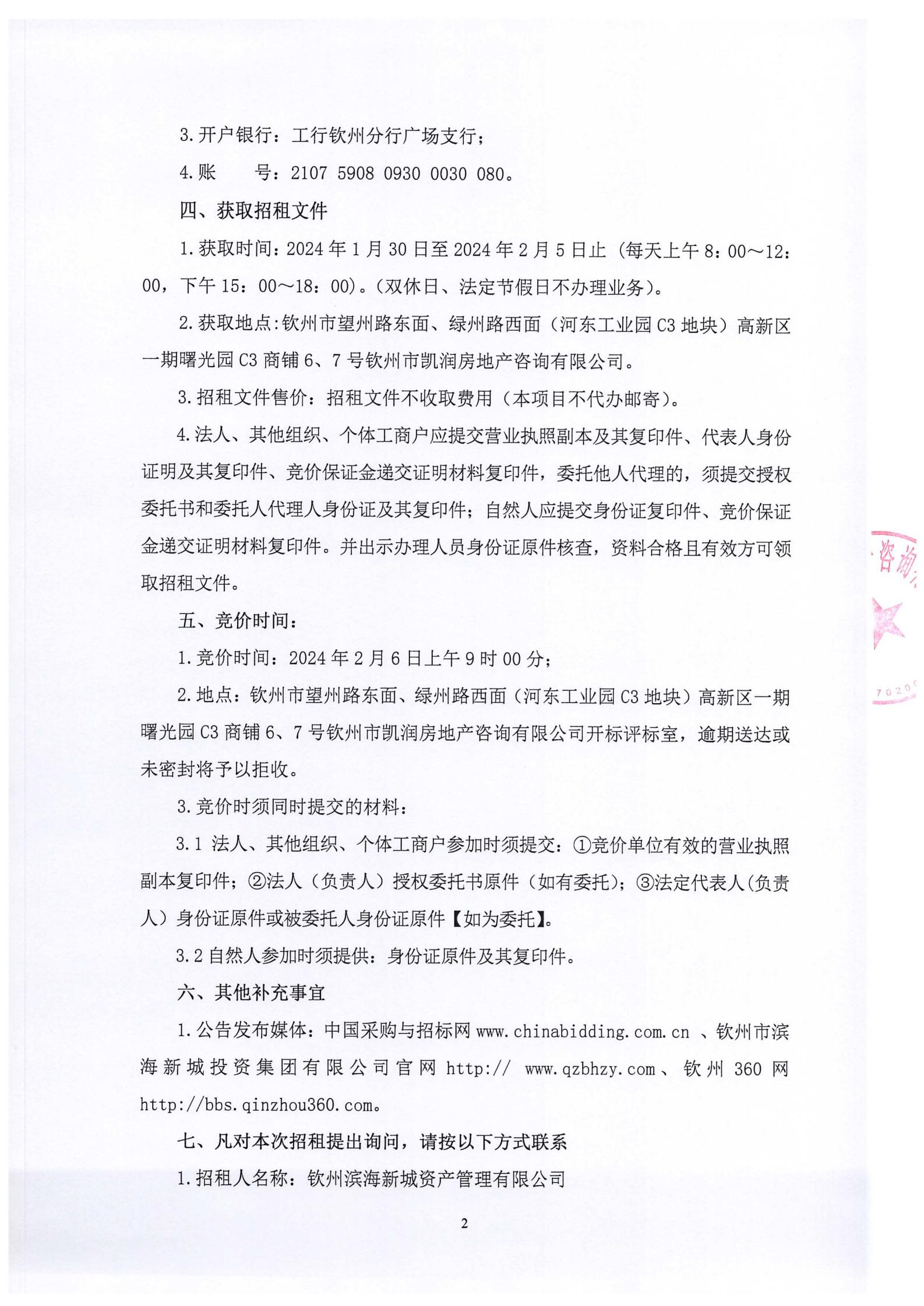 關(guān)于欽州市老街范圍人民南路118號房屋公開招租的公告