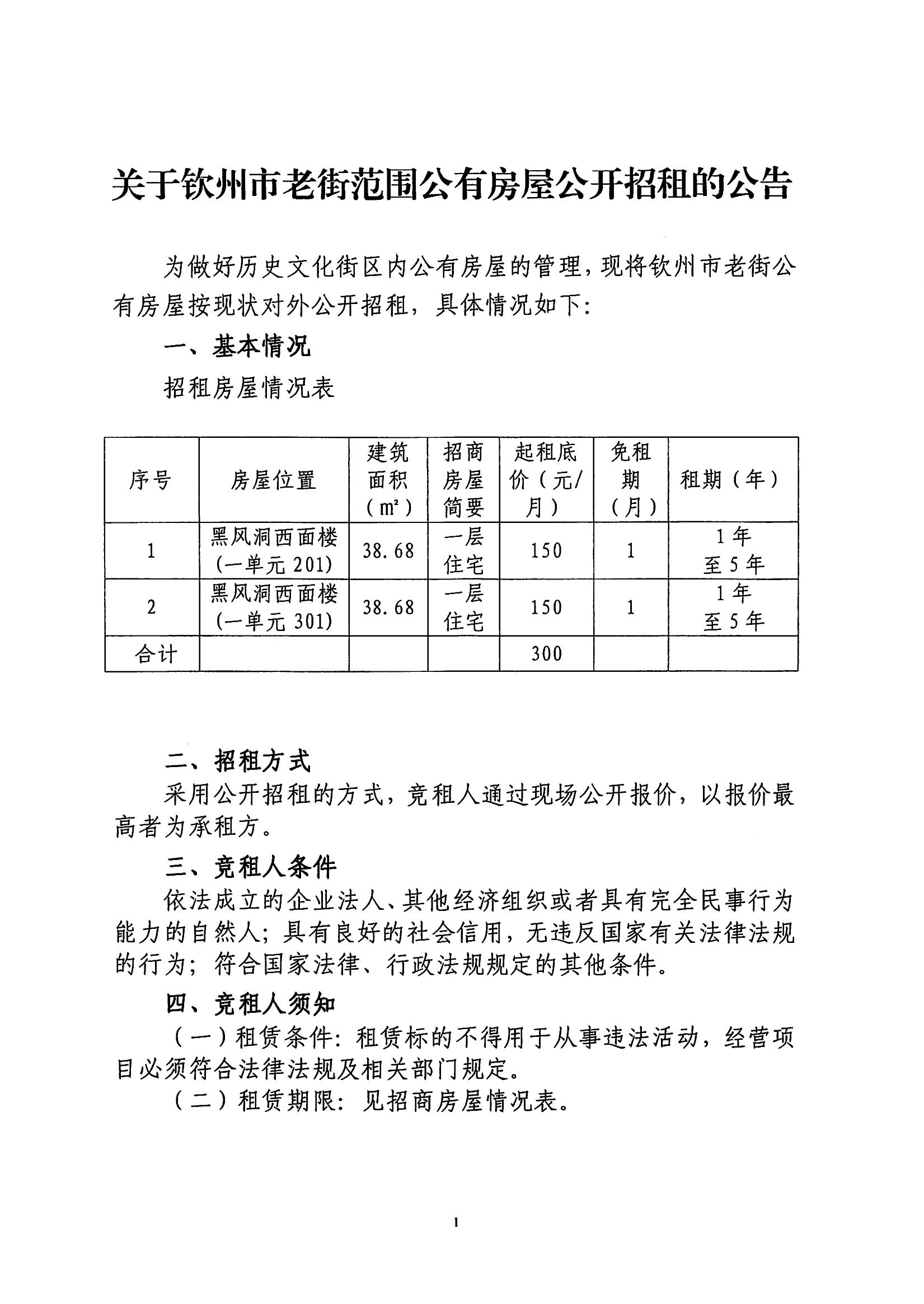 欽州市老街范圍公有房屋公開(kāi)招租公告2
