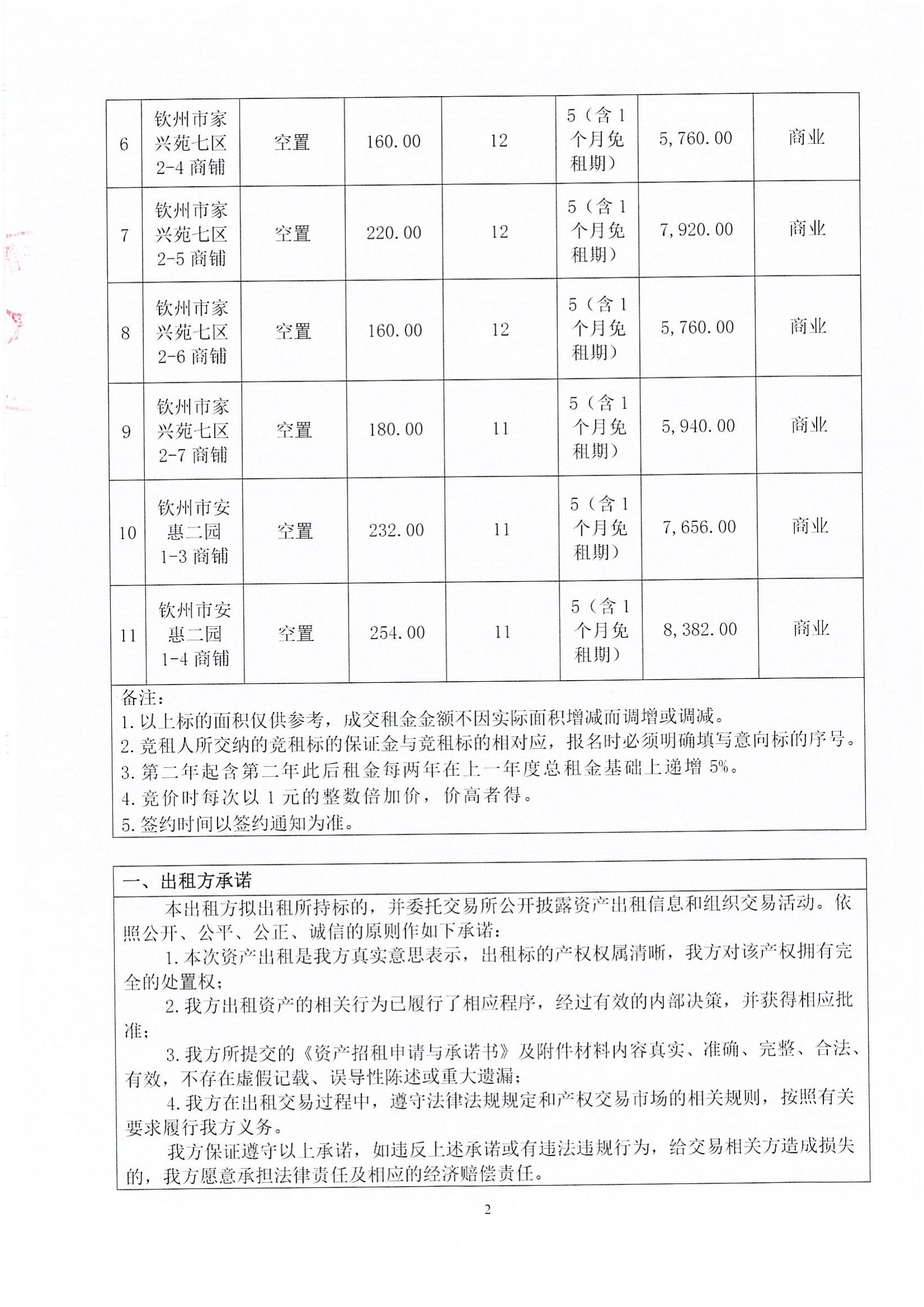 欽州市家興苑六區(qū)、家興苑七區(qū)、安惠二園共11間商鋪公開招租項(xiàng)目