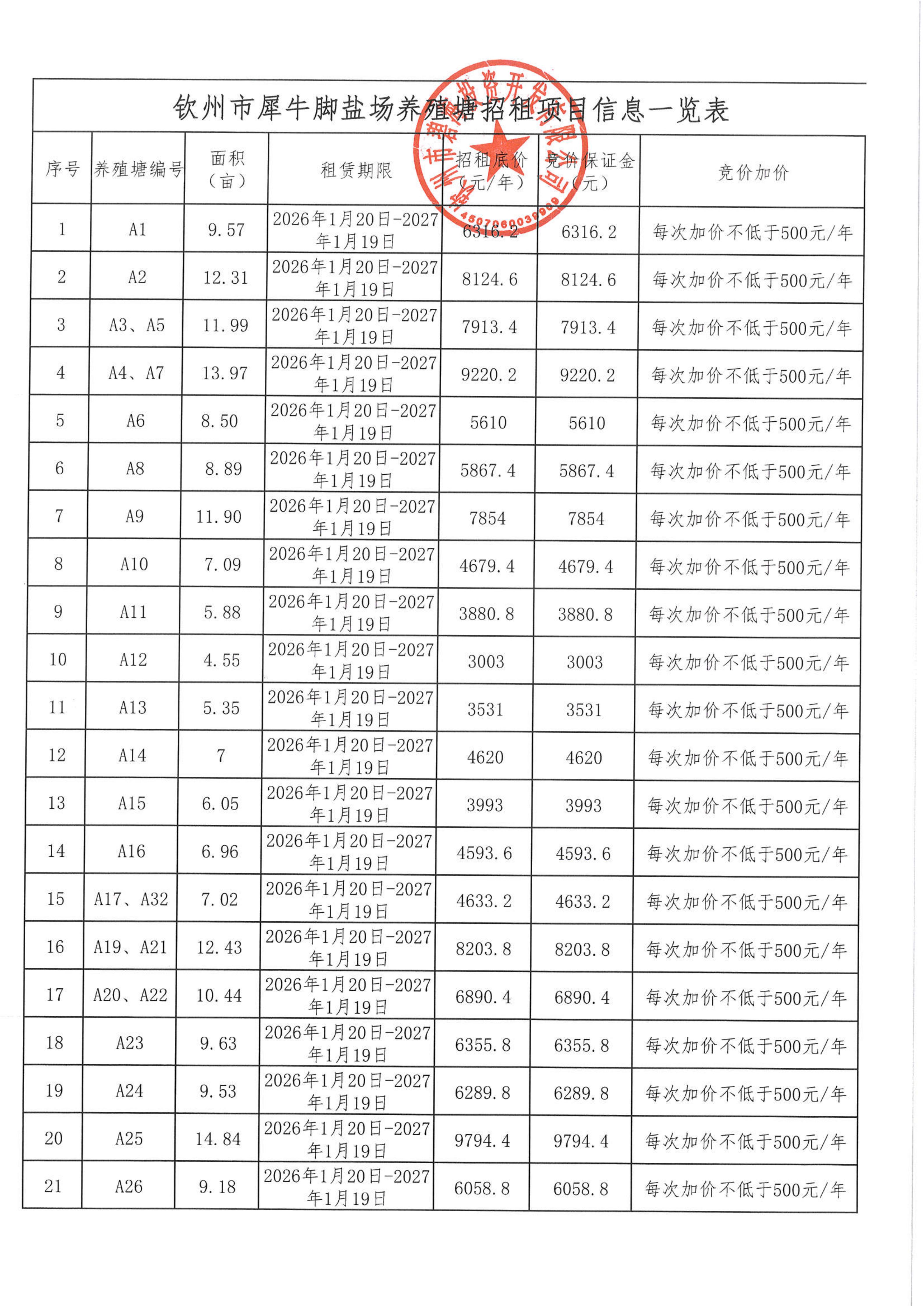 關(guān)于犀牛腳鹽場(chǎng)養(yǎng)殖塘公開(kāi)招租的公告
